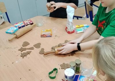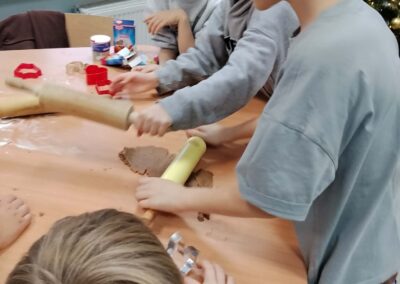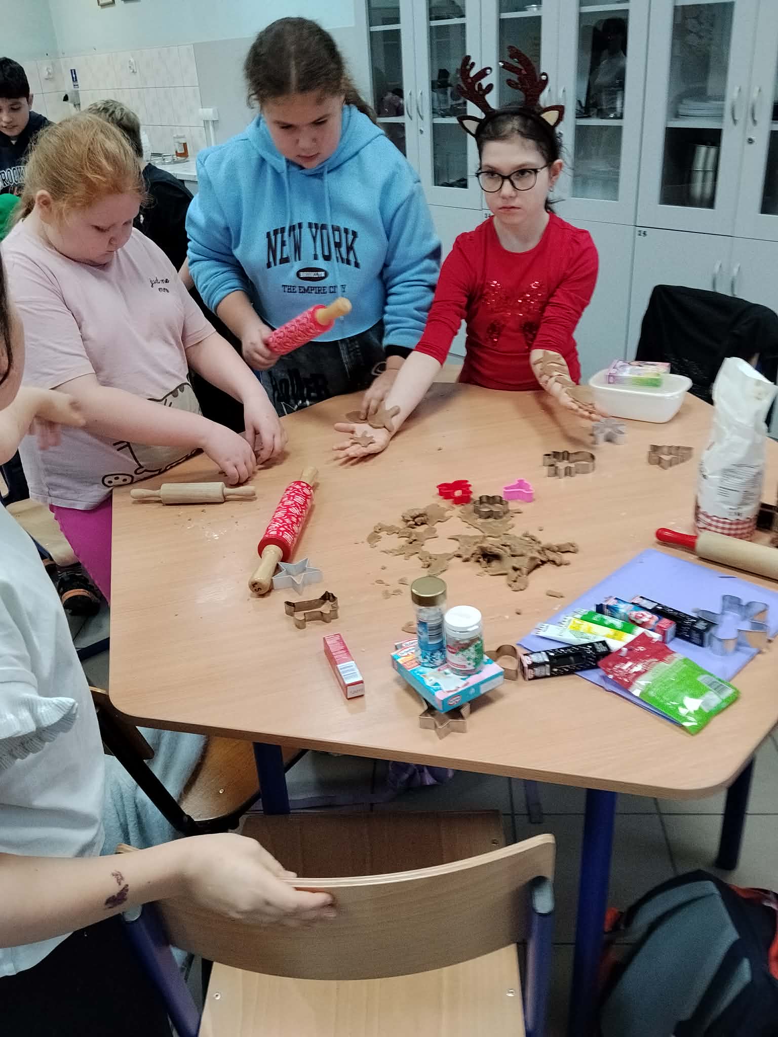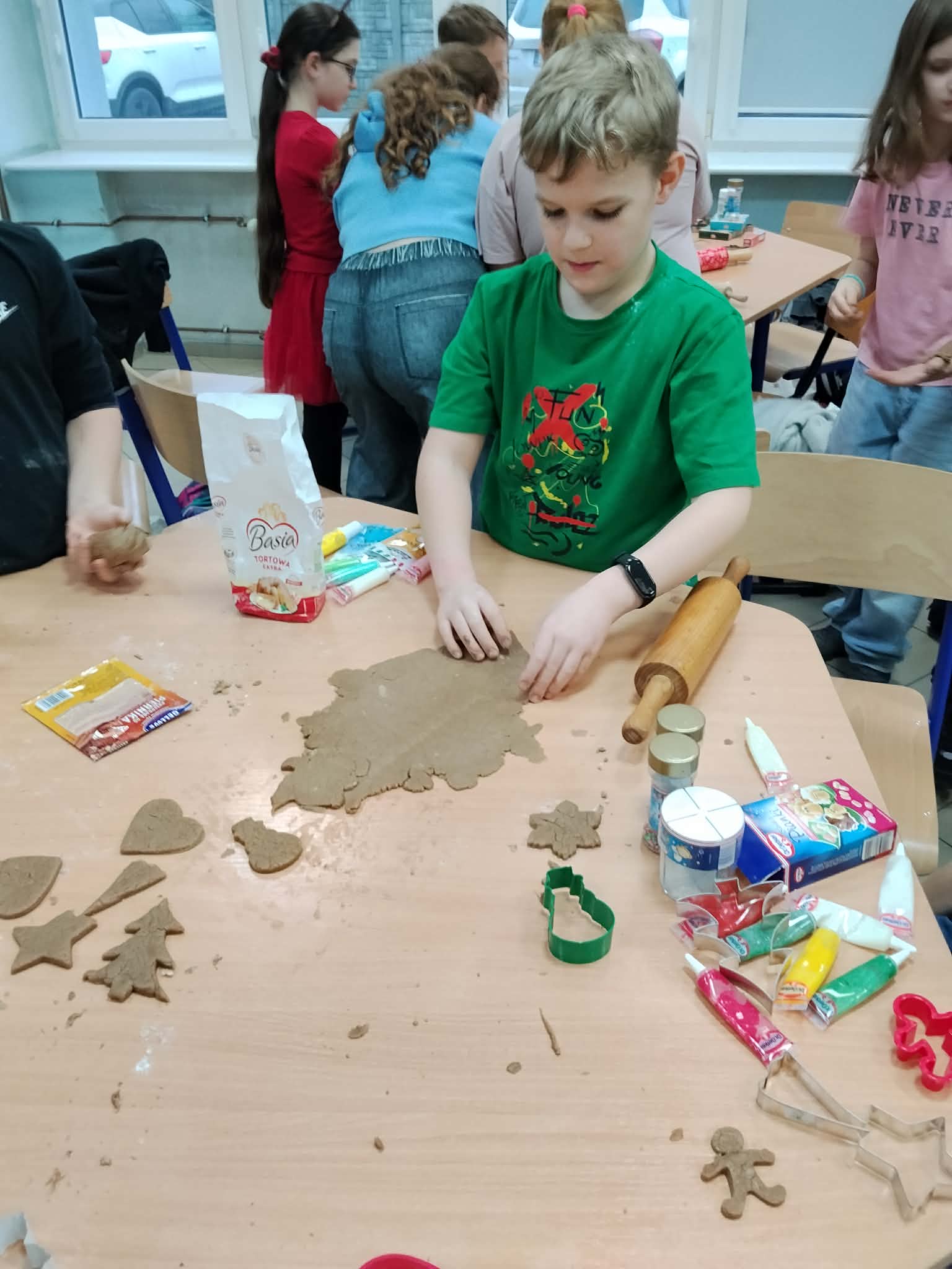 Uczniowie klas trzecich uczestniczyli w warsztatach kulinarnych. Cóż tam się działo?! Mąka, masło, miód, odrobina cukru i torebka przypraw korzennych to idealny przepis na smaczne pierniczki. Zapach roznoszący się podczas pieczenia przyciągnął do nas wielu uczniów i nauczycieli. Ile radości przyniosło dekorowanie własnoręcznie upieczonych pierniczków?! Cudownie by było gdybyśmy mogli podzielić się tym świątecznym zapachem przez internet…                                                                                                                                                                                 Justyna Owczarkowska i Ewa Pasieracka
