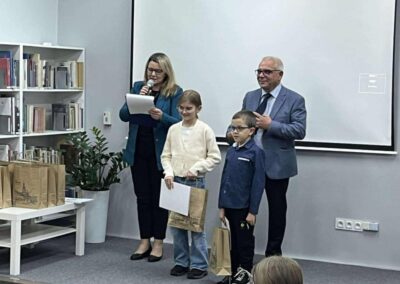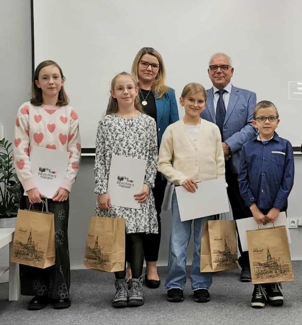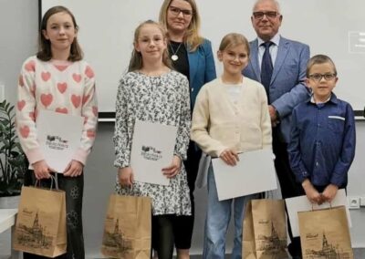 Dnia 13 listopada br. odbyło się uroczyste wręczenie nagród w konkursie Godomy po naszymu! Wydarzenie zorganizowane przez Bibliotekę Publiczną Miasta i Gminy Kostrzyn. Konkurs polegał na napisaniu własnego tekstu w gwarze poznańskiej o dowolnej tematyce i w dowolnej formie. Nasi uczniowie, rodzice i nauczyciele zdobyli szereg nagród. W kategorii dzieci oraz młodzież do 15 lat pierwsze miejsce zdobył Krzysztof Adamski z klasy 5a, a wyróżnienia otrzymały: Amelia Stępniak z 6c, Agata Jarmuszczak z 5a. W kategorii 15+ wyróżnienia zdobyły pani Barbara Polińska (bibliotekarz), pani Karolina Adamska (mama naszych uczniów) oraz Justyna Jarmuszczak (mama naszych uczennic).