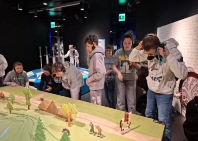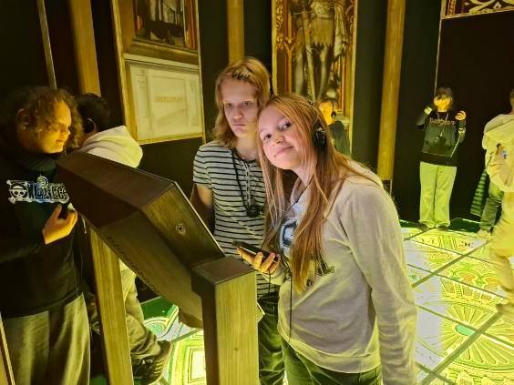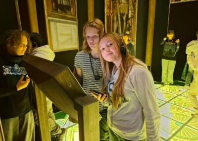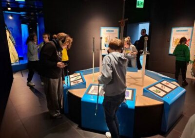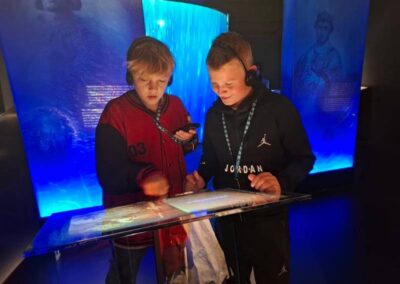 Podczas wizyty uczniowie obejrzeli multimedialną ekspozycję główną, która w atrakcyjny sposób przybliżyła im historię najstarszej części Poznania. Każdy uczestnik skorzystał z indywidualnej audiowycieczki, dzięki której zwiedzanie Ostrowa Tumskiego nabrało nowego wymiaru. Dźwiękowe przewodniki pozwoliły uczniom odkrywać zabytki i opowieści w swoim tempie, angażując ich uwagę i wyobraźnię.