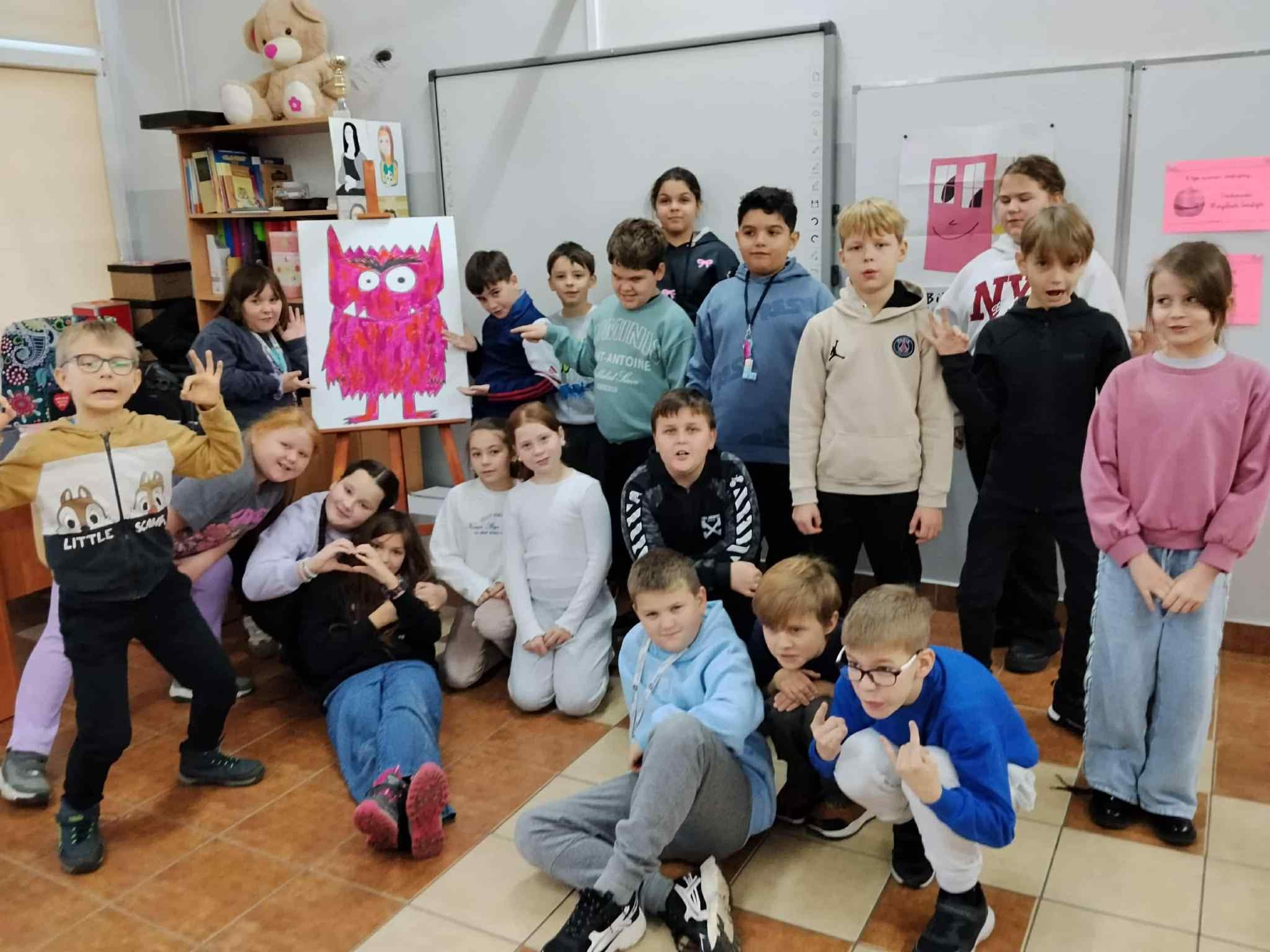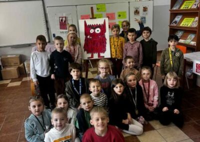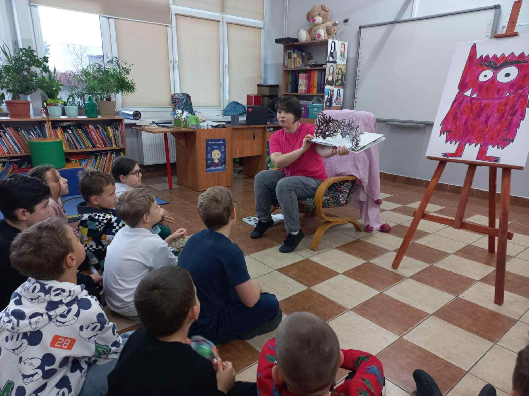 W dniach 17-28 listopada uczniowie klas 1-3 uczestniczyli w zajęciach bibliotecznych na podstawie książki Anne Llenas pt. Kolory potwór. Podczas spotkań uczniowie poznali książki pop-up, które były pretekstem do rozmów o emocjach. Uczniowie opowiedzieli gdzie w ich ciele powstają emocje, do czego nam służą oraz podzielili się swoimi sposobami na radzenie sobie z trudnymi uczuciami, takimi jak strach czy złość. Uczestnicy spotkania mogli również posłuchać dzwonka koshi, którego dźwięk jest jednym ze sposobów relaksacji. Na koniec potwór zostawił dla uczniów potwornie kolorowe zadania do wykonania i wywieszenia na klasowych gazetkach.
