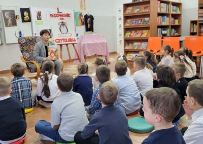 Dnia 27 i 28 stycznia br. w bibliotece szkolnej odbyło się uroczyste Pasowanie na Czytelnika. Dzielni adepci czytania rozwiązali trzy zadania, aby dowieść swojej wiedzy czytelniczej. Uczniowie opisali jak dbać o książki, omówili etapy ich powstawania oraz rozwiązali bajkowe zagadki. Po uroczystym złożeniu przysięgi czytelniczej uczniowie klas pierwszych zostali pasowani na Czytelników i Czytelniczki bibliotecznym Piórem Fantazji. Każdy pierwszak otrzymał również upominek – Wyprawkę Czytelniczą.