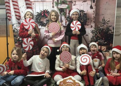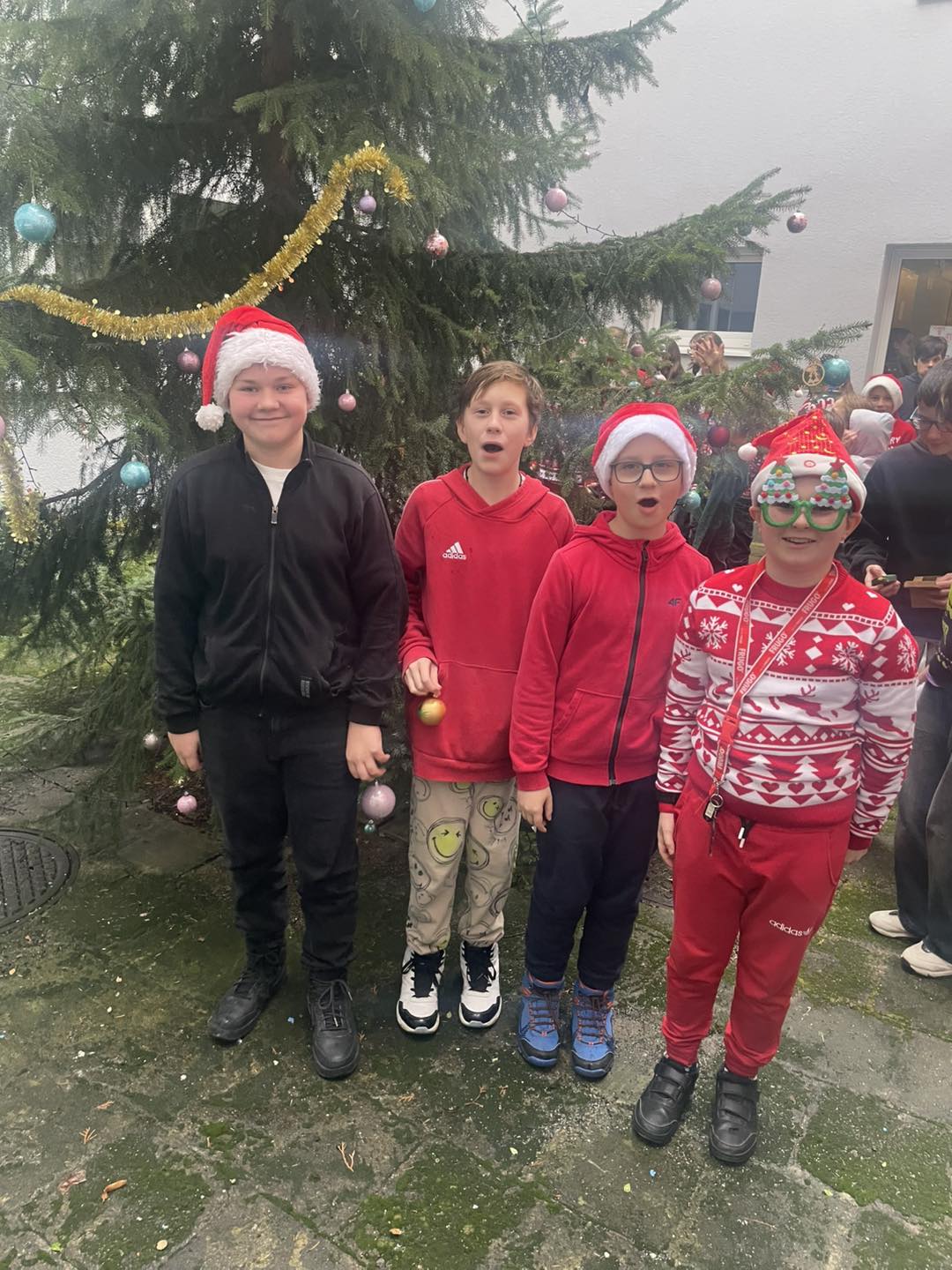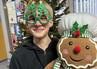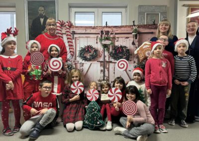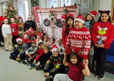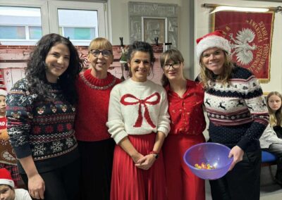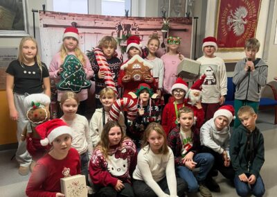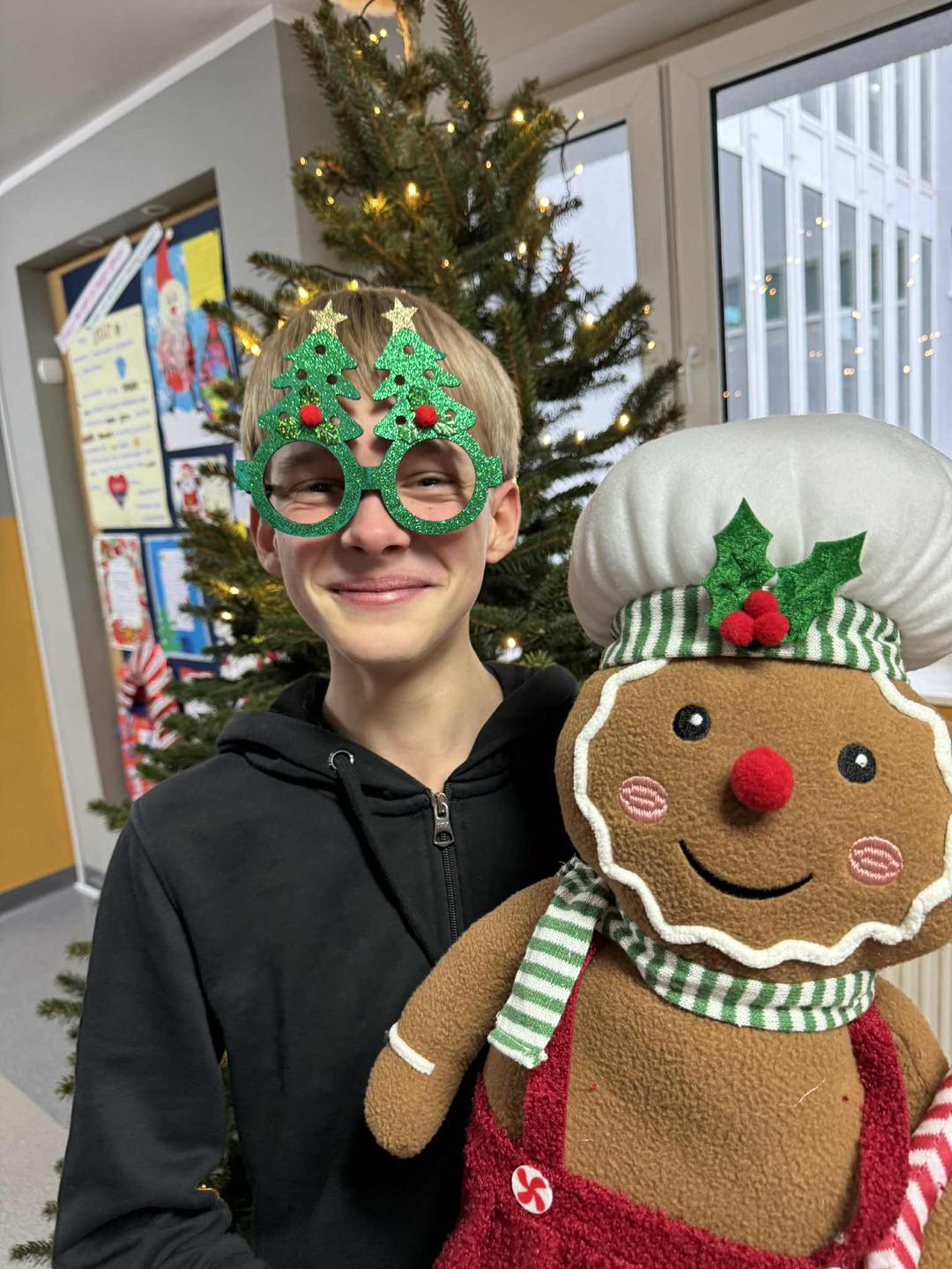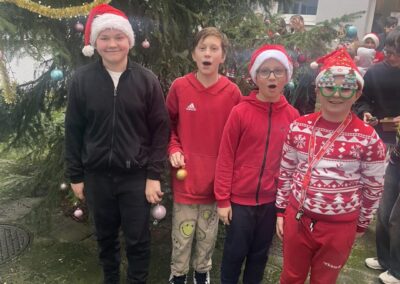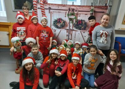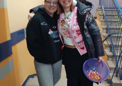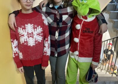 Uczniowie klas 1–3 wraz z wychowawczyniami świętowali Mikołajki na wiele radosnych i pomysłowych sposobów. Każda klasa miała swoją wyjątkową formę obchodów – wspólnie ubierano choinkę, uczestniczono w seansie kinowym, odbywały się zajęcia tematyczne oraz wspólne śpiewanie piosenek świątecznych. Tego dnia nie zabrakło także wyjątkowej, świątecznej atmosfery, o którą zadbali sami uczniowie – wszyscy byli ubrani na czerwono lub w stroje z motywem świątecznym.
