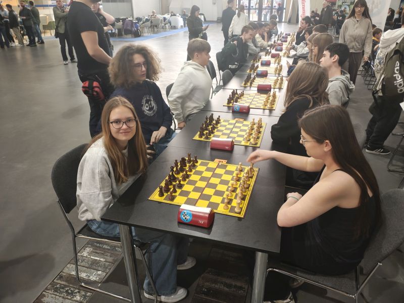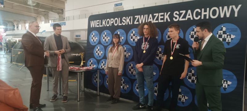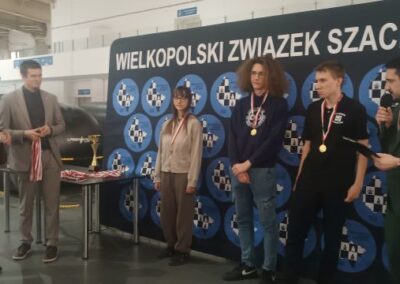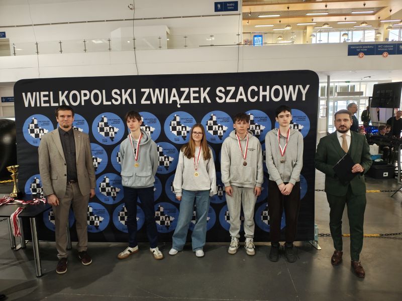 Dzień później, w tym samym miejscu, odbyły się Drużynowe Mistrzostwa Wielkopolski Szkół w Szachach . Naszą gminę reprezentowało dwóch uczniów klas siódmych  z SP 1 Kostrzyn: Adam Bilski i Aleksander Adamski. Startując w kategorii klas VII, VIII i szkół ponadpodstawowych zajęli wysokie V miejsce na 17 zespołów.