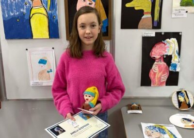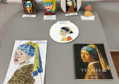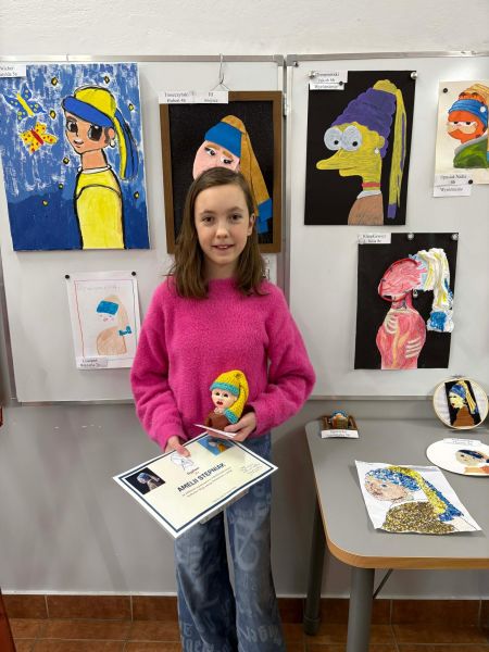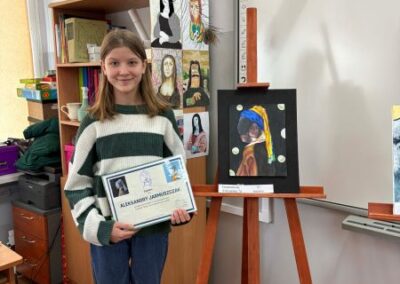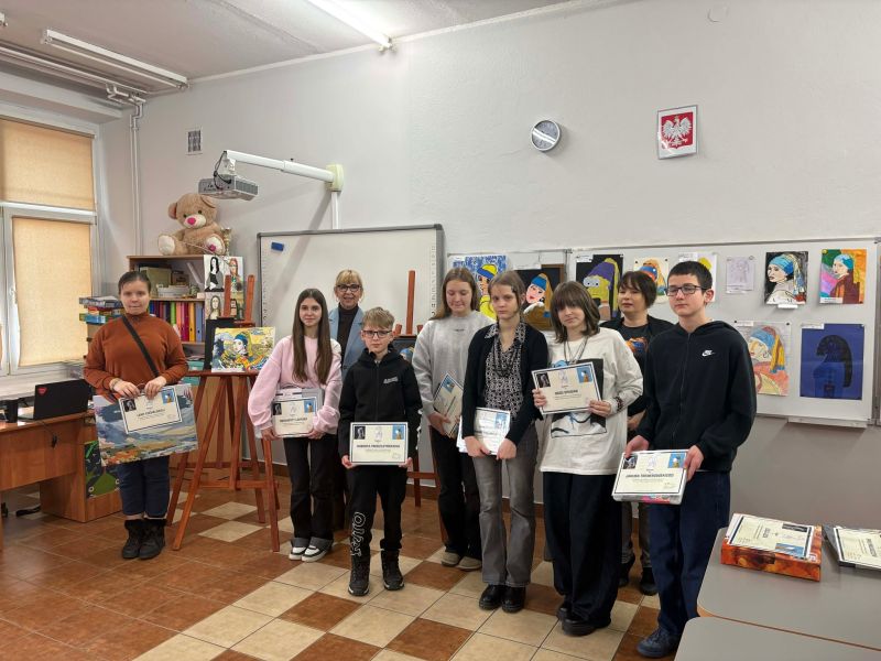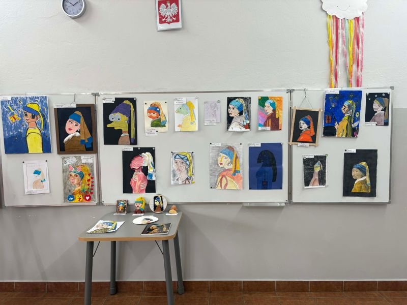 W styczniu i lutym br. biblioteka szkolna zorganizowała trzecią już edycję konkursu Moja własna wersja znanego obrazu. W tym roku uczniowie na warsztat wzięli obraz Vermeera pt. Dziewczyna w turbanie, znany też jako Dziewczyna z perłą. Konkurs był dedykowany uczniom klas 4-8. W tym konkursie uczestników nie ogranicza nic, poza ich kreatywnością i fantazją. Swoje prace mogli wykonać w dowolnej technice i dowolnym formacie. Na konkurs zostało złożonych aż 28 prac! Po długich i trudnych obradach, ze względu na niezwykłą kreatywność prac, Jury postanowiło nagrodzić WSZYSTKICH uczestników drobnym upominkiem. Głównych laureatów wyłoniono aż 11!