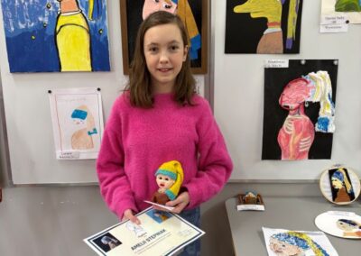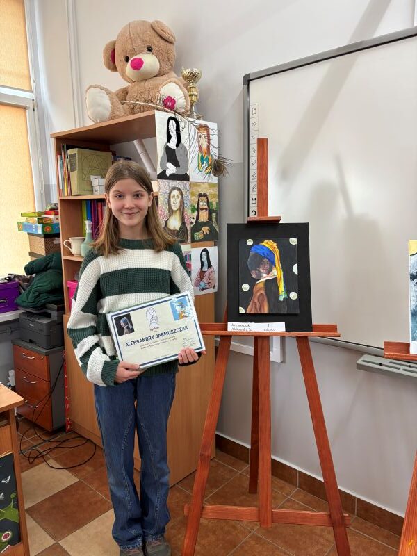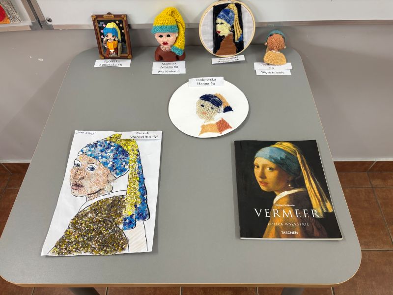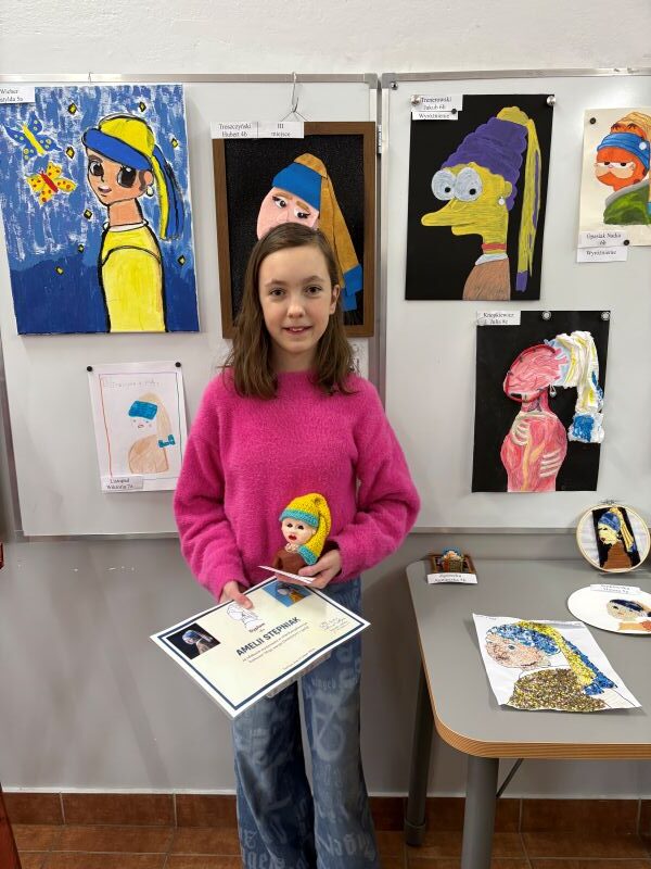 W styczniu i lutym br. biblioteka szkolna zorganizowała trzecią już edycję konkursu Moja własna wersja znanego obrazu. W tym roku uczniowie na warsztat wzięli obraz Vermeera pt. Dziewczyna w turbanie, znany też jako Dziewczyna z perłą. Konkurs był dedykowany uczniom klas 4-8. W tym konkursie uczestników nie ogranicza nic, poza ich kreatywnością i fantazją. Swoje prace mogli wykonać w dowolnej technice i dowolnym formacie. Na konkurs zostało złożonych aż 28 prac!  Po długich i trudnych obradach, ze względu na niezwykłą kreatywność prac,  Jury postanowiło nagrodzić WSZYSTKICH uczestników drobnym upominkiem. Głównych  laureatów wyłoniono aż 11!