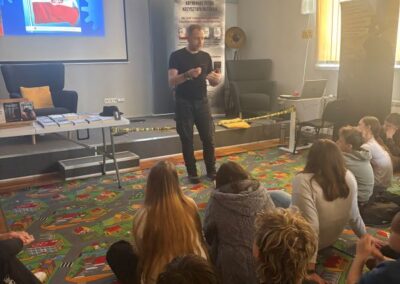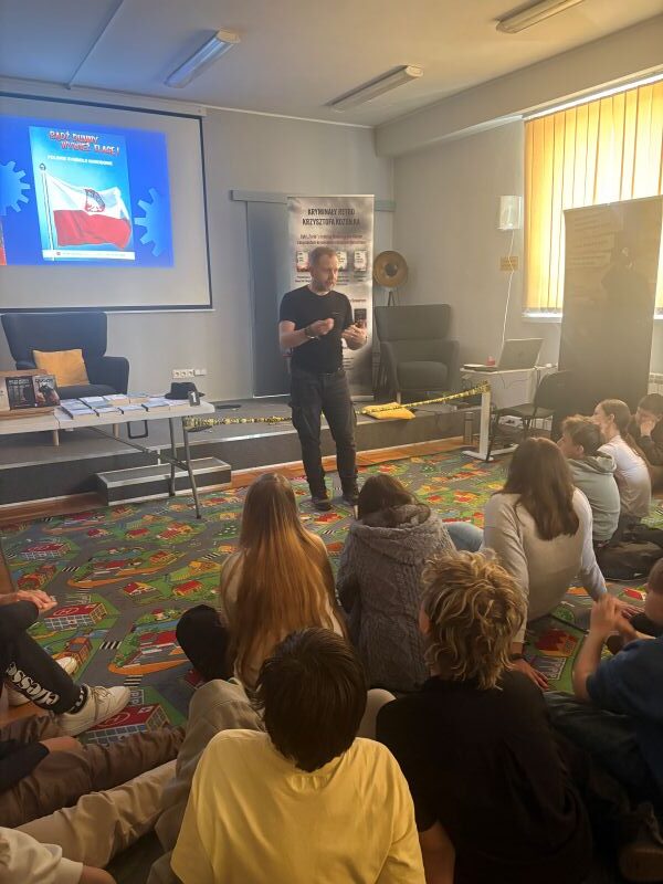 23 kwietnia, w Światowy Dzień Książki i Praw Autorskich, uczniowie klas VI mieli niezwykłą okazję spotkać się z pisarzem, dziennikarzem oraz wydawcą panem Krzysztofem Koziołkiem. Podczas spotkania nasi uczniowie zamienili się w detektywów weryfikujących informacje i wykazujących się czujnością na próby manipulacji.