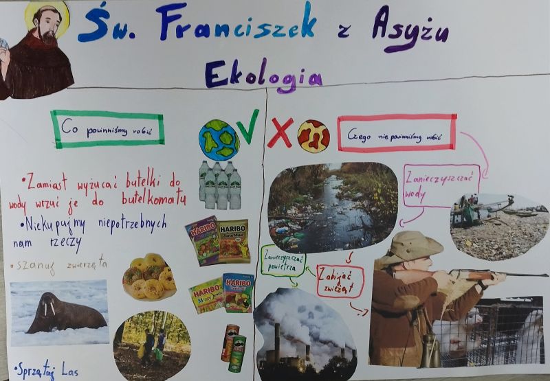 Dnia 1 kwietnia uczniowie naszej szkoły uczestniczyli w rekolekcjach wielkopostnych, które pomogły im przygotować się duchowo do Świąt Wielkanocnych. Podczas zajęć poznawali życie św. Franciszka z Asyżu, jego miłość do przyrody oraz powody, dla których jest on patronem ekologów. Uczniowie uczyli się, że troska o stworzenie jest zadaniem każdego człowieka i poznawali sposoby ochrony środowiska.