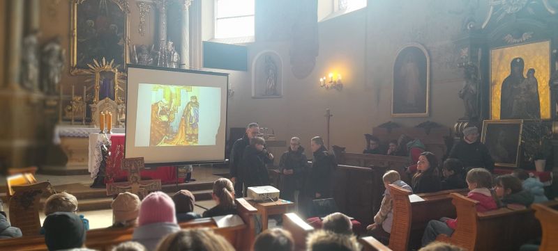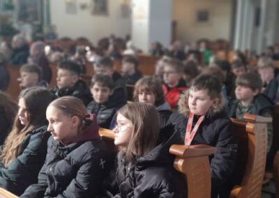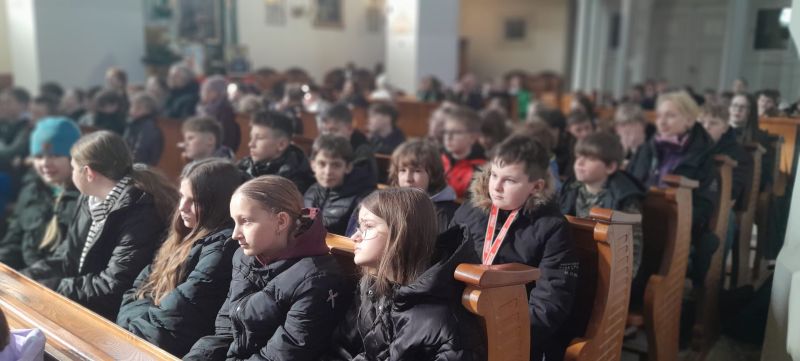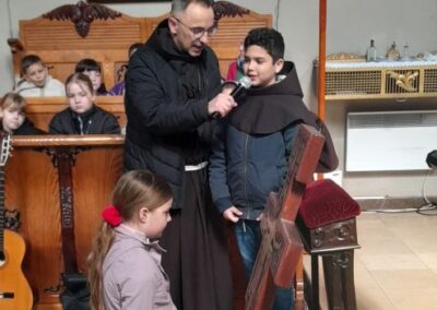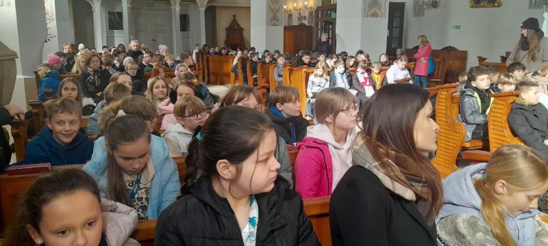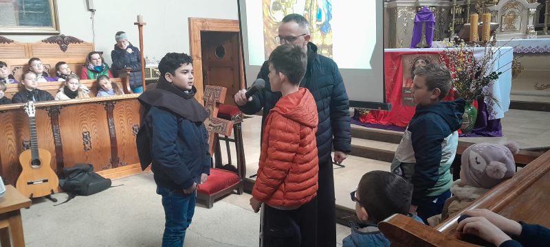 Uczniowie wzięli udział również w nauce rekolekcyjnej prowadzonej przez ojca Hieronima, który przybliżył im postać św. Franciszka i św. Klary oraz  we wspólnej  Mszy Świętej.