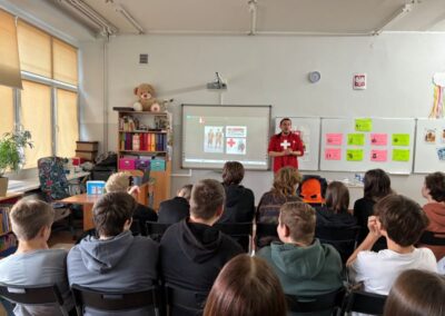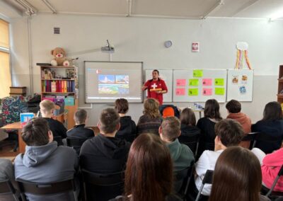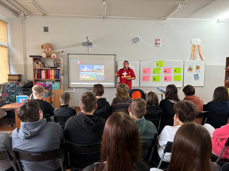 19 listopada bibliotekę szkolną odwiedził pan Bartosz Świergiel – podróżnik, dziennikarz, przewodnik turystyczny. Uczniowie klasy 7a mieli okazję wybrać się w wirtualną podróż po Szwajcarii – kraju niewielkim i jednocześnie niezwykle zaskakującym. Młodzież poznała geografię kraju, ciekawostki dotyczące przyrody, dowiedziała się jak wygląda życie w szwajcarskiej szkole oraz poznała wielu Polaków których historia łączy się z historią Szwajcarii. Podczas prelekcji uczniowie mogli zdobywać czekoladki szwajcarskie, udzielając odpowiedzi na zadawane przez pana Bartosza pytania;)
