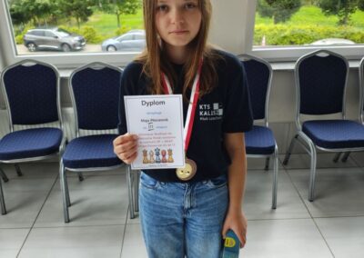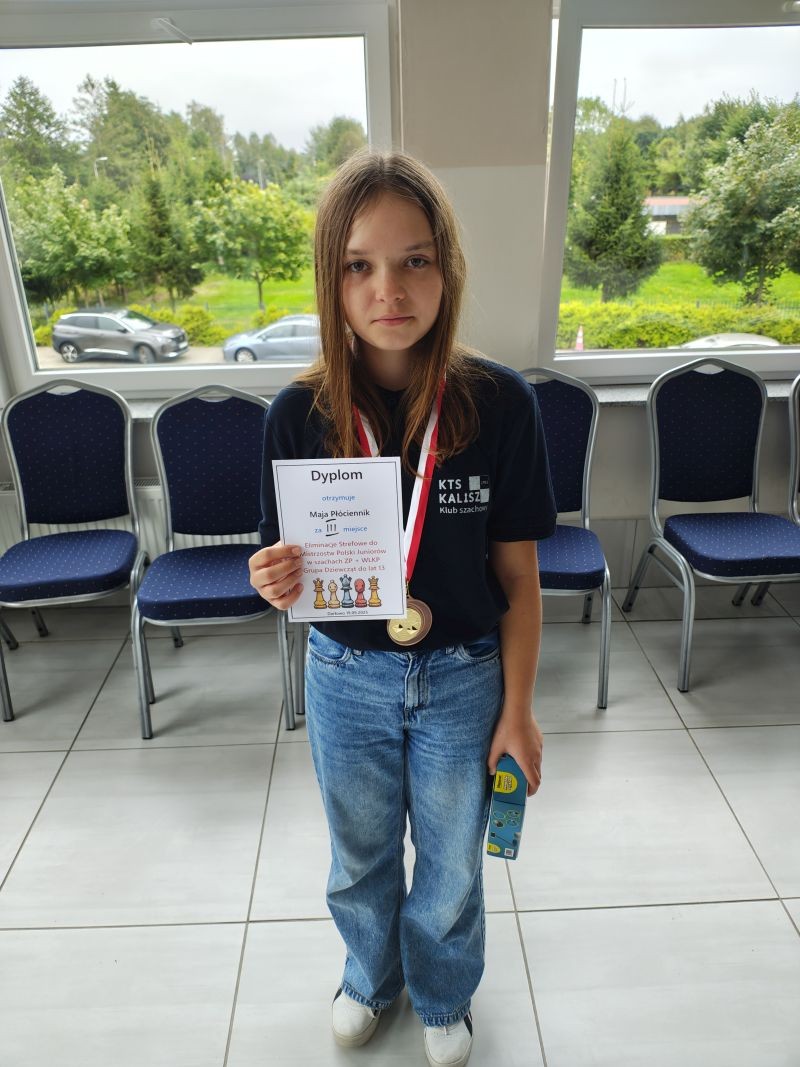 W dniach 14-19.09.25r. w Darłowie odbyły się Eliminacje Strefowe do Mistrzostw Polski Juniorów i Młodzików. Obejmowały one najlepszych zawodników z województwa zachodniopomorskiego i wielkopolskiego. Startująca w nich Maja Płóciennik, uczennica klasy 6c i od dwóch lat reprezentująca klub KTS Kalisz, zajęła III miejsce, uzyskując tym samym awans do Ogólnopolskiej Olimpiady Młodzieży do lat 14. Zawodniczka dodatkowo wyrobiła drugą i ostatnią normę na I kategorię szachową.