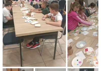 Na zakończenie czekały na nas warsztaty artystyczne. Każde dziecko zabrało do domu własnoręcznie wykonany magnes techniką decoupage oraz mini obrazek wykonany metodą stemplowania.