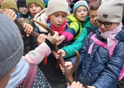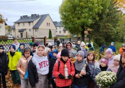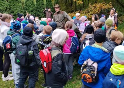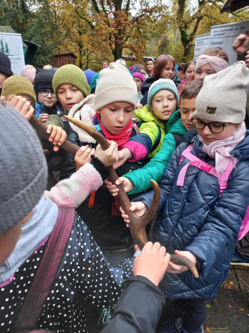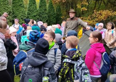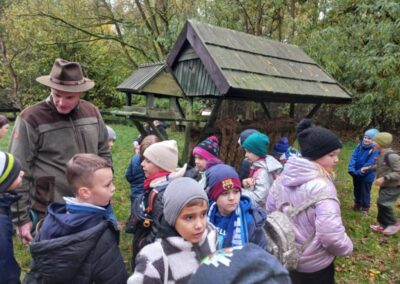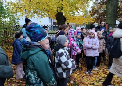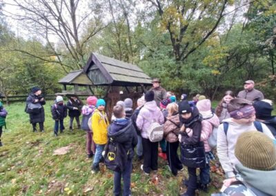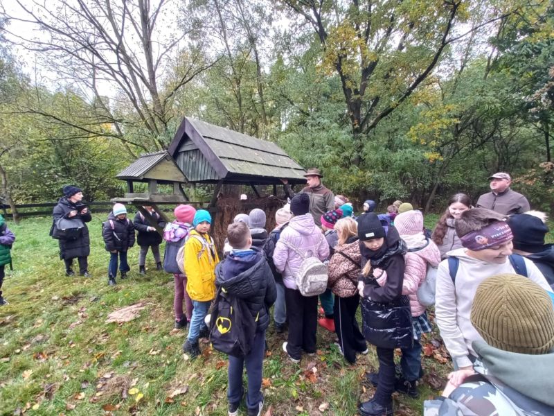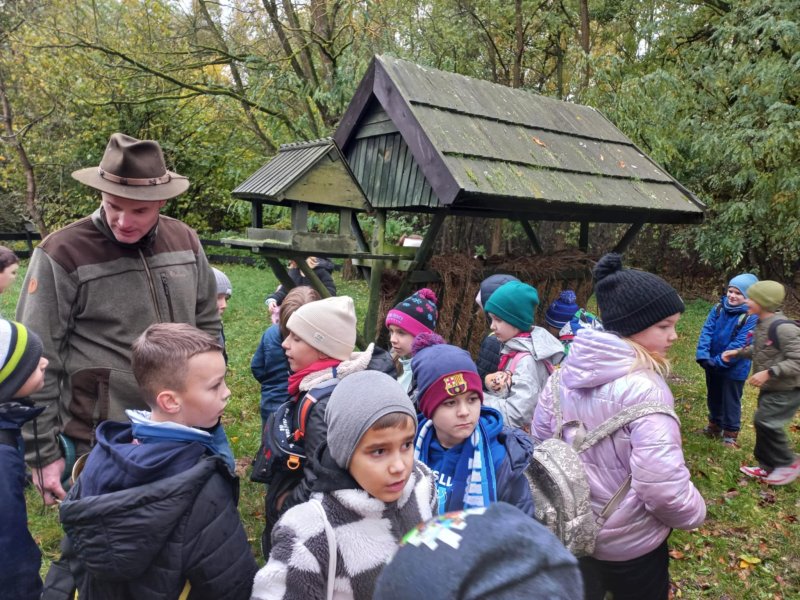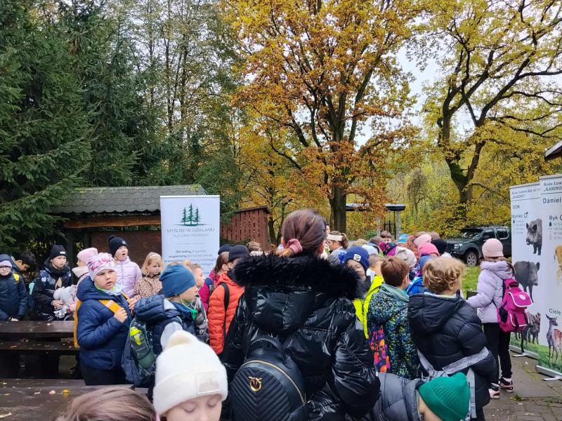 Dnia 24 października, z okazji zbliżającego się Dnia Patrona, klasy trzecie z wychowawczyniami wybrały się do Drzązgowa. Celem wycieczki było miejsce pamięci o Ewaryście Estkowskim, które znajduje się w miejscu urodzenia patrona naszej szkoły. Złożyliśmy kwiaty oraz zapaliliśmy znicze i wysłuchaliśmy kilku informacji na temat życia Ewarysta Estkowskiego. Następnie wykorzystując okno pogodowe wybraliśmy się na spacer do wigwamu, gdzie wysłuchaliśmy ciekawych informacji na temat życia zwierząt, pracy leśnika, a w końcu upiekliśmy pyszne kiełbaski w prawdziwym ognisku. Po skończonym posiłku wróciliśmy spacerem do autokarów, które odwiozły nas szczęśliwie do Kostrzyna.