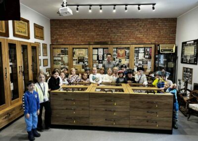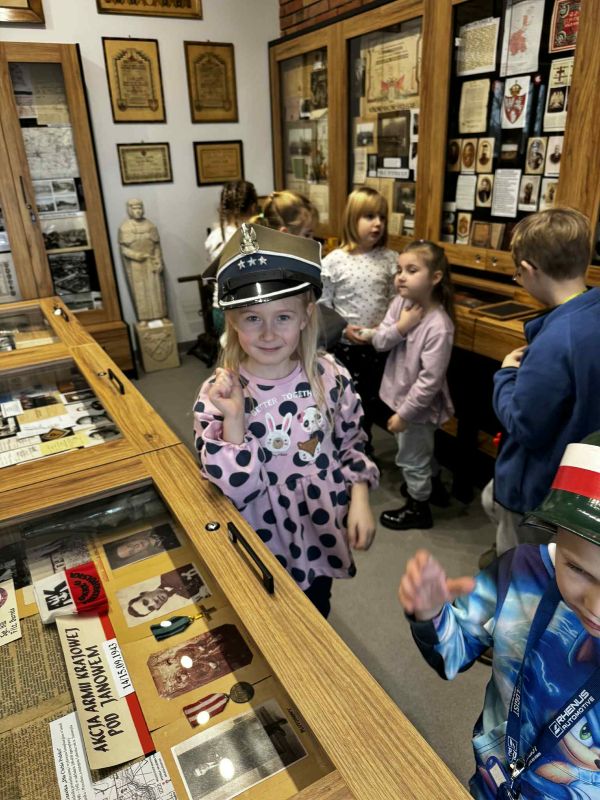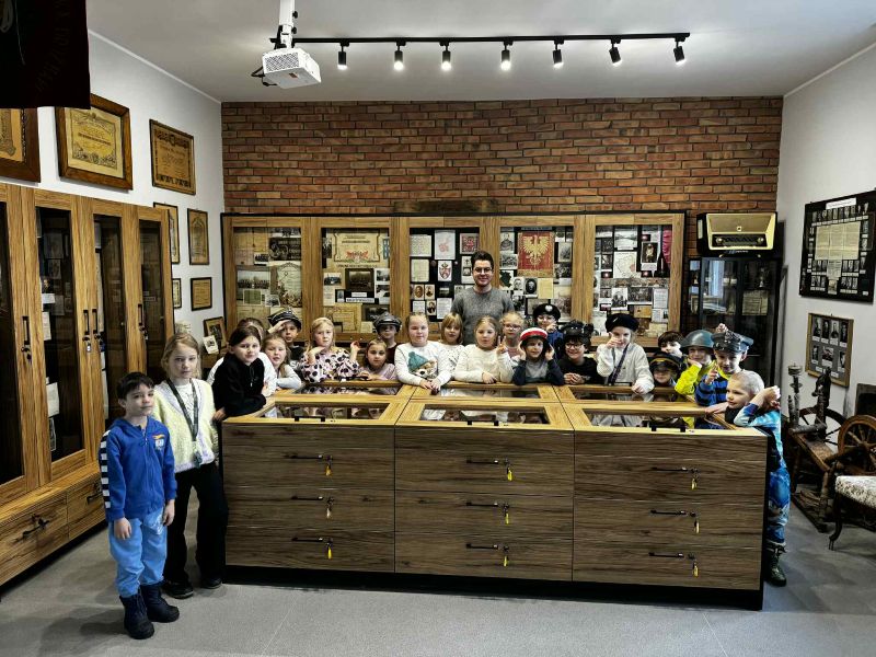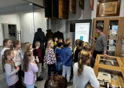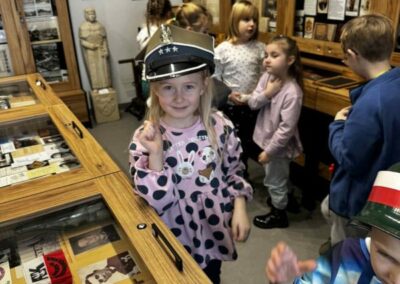 Podczas zwiedzania dzieci miały okazję zobaczyć liczne eksponaty związane z historią Kostrzyna i okolic, dawne przedmioty codziennego użytku, fotografie oraz pamiątki z minionych lat. Uczniowie z dużym zainteresowaniem słuchali opowieści i chętnie zadawali pytania, aktywnie uczestnicząc w spotkaniu.
