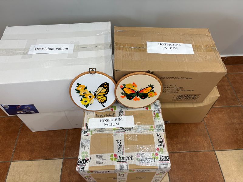 Do zebranych darów zostały również dołączone haftowane motyle, dochód z ich sprzedaży zasili konto Hospicjum. Wszystkim darczyńcom serdecznie dziękujemy za okazane wsparcie!
