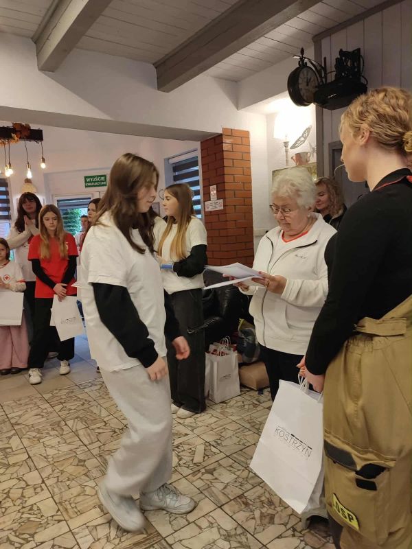 Wszyscy uczniowie pod okiem strażaków z OSP Kostrzyn doskonalili swoje umiejętności w zakresie pierwszej pomocy: resuscytacji, ułożenia poszkodowanego w pozycji bocznej, zadławienia, złamania i omdlenia.